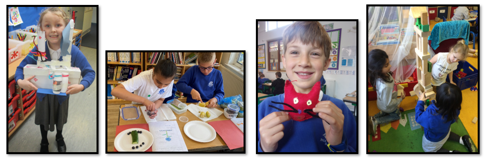 The children work both independently and as members of a team, sharing their ideas and creative skills to complete their planned product. On completing each project, the children evaluate their work, taking into consideration how well their product meets the design specification.